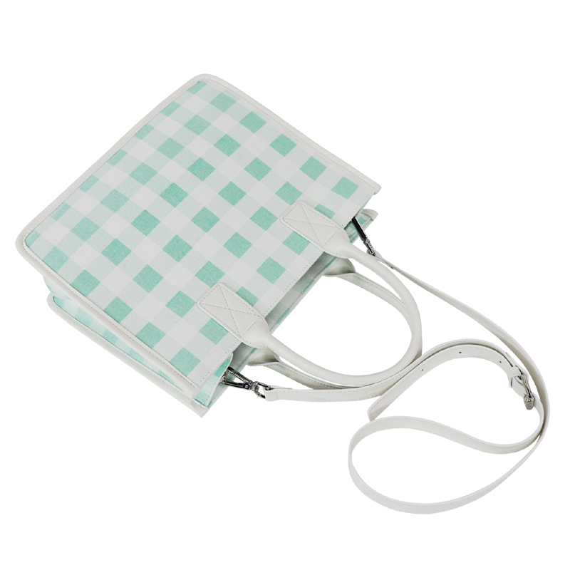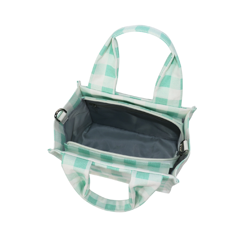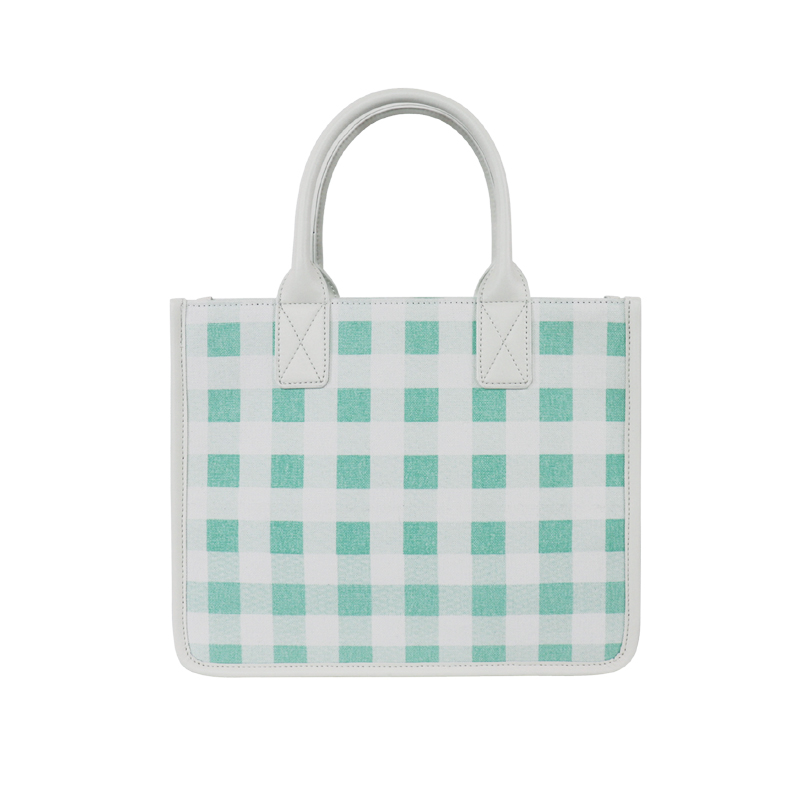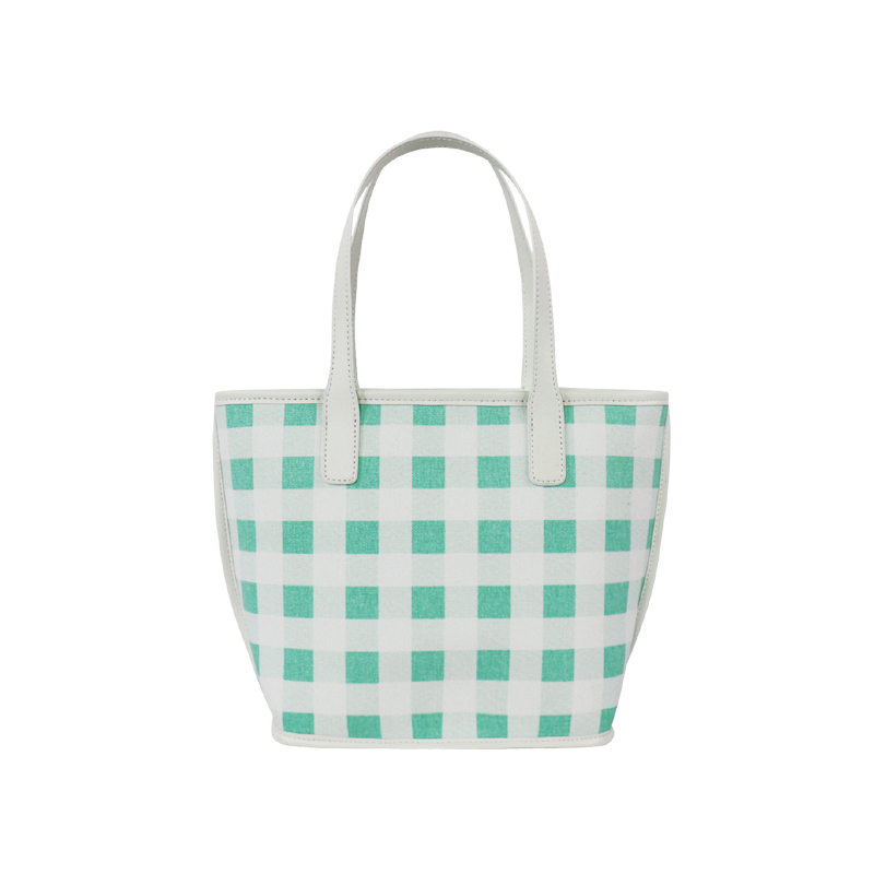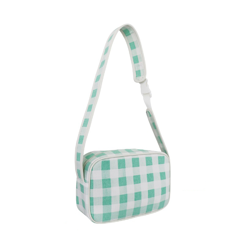 森系上班小拎包 帆布網紅小紅書小方包 韓國綠格子小眾手拎單肩包
